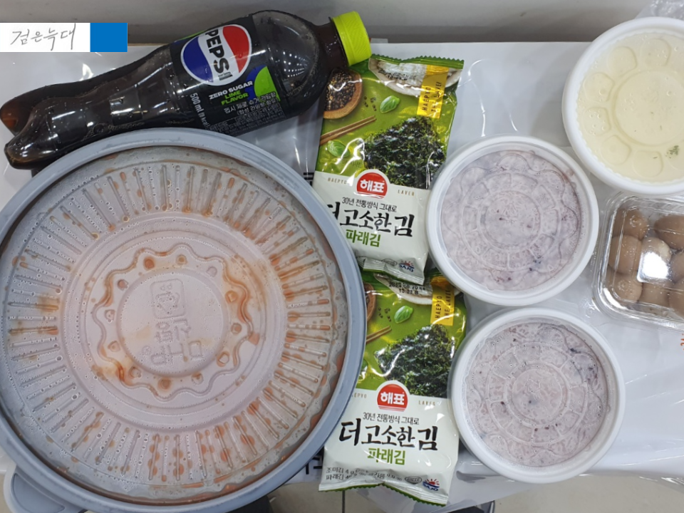 공기밥2, 김2, 메추리알, 음료가 나옵니다