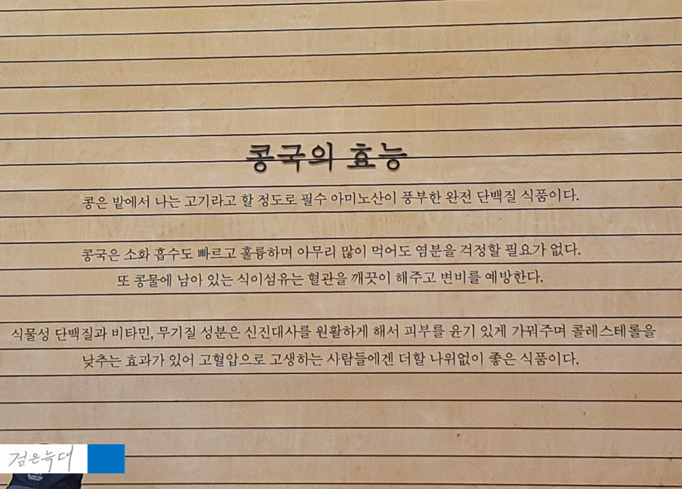 벽면에는 콩국의 효능이 적혀 있으니