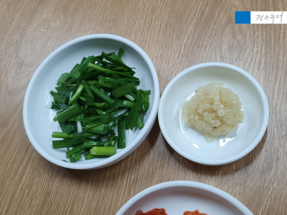 부추와 다진마늘이 나오는데