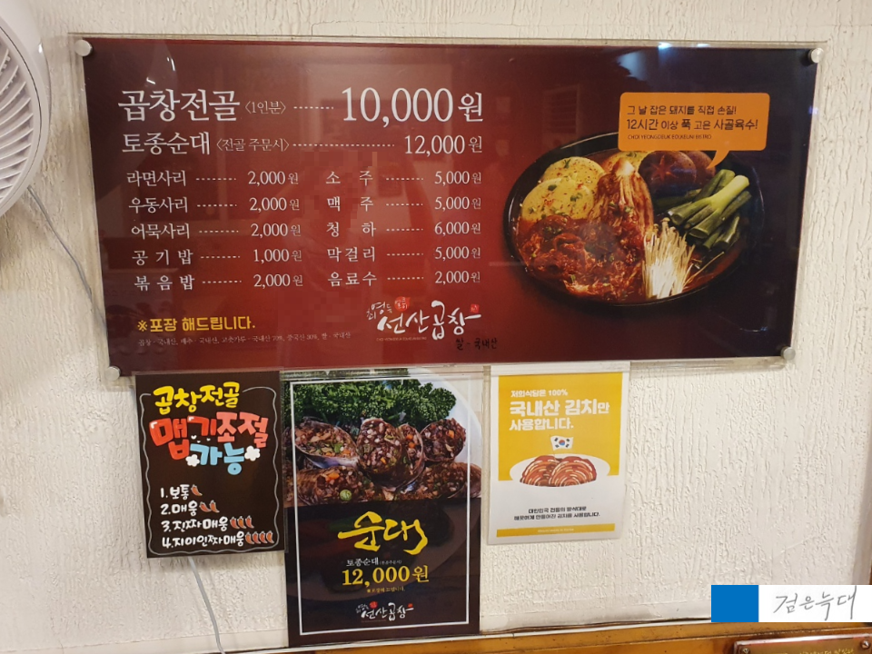 ▷ 메인 메뉴는 곱창전골과 토종순대 두가지