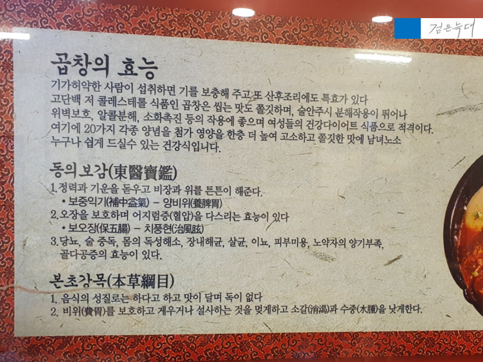 여기는 곱창의 효능이 적혀 있네요 ㅋㅋ