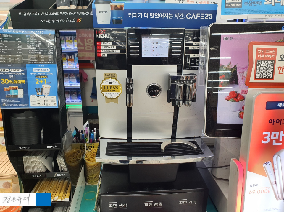 요즘에는 각 편의점들 마다 커피 머신기가 있어서 저렴한 가격으로 커피를 내려 먹을 수 있습니다 엄청나게 뛰어난 맛을 아니지만 가격대가 저렴한 편이기 때문에 그냥 커피 한 잔 땡길 때 가볍