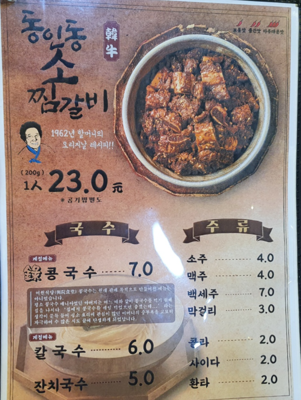 소찜갈비 메뉴가 모두 있는 곳입니다