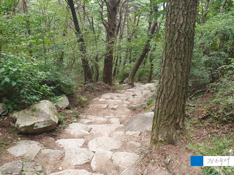 오른쪽의 산길 및 계단 등으로