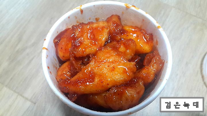 가장 많이 먹는 떡 + 닭강정 작은컵으로 포장해온 상태입니다
