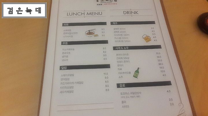 보시면 메뉴판이 이렇게 런치메뉴와