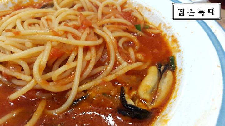 마지막 메뉴는 매콤 홍합탕 스파게티입니다