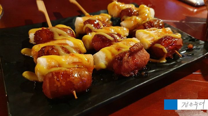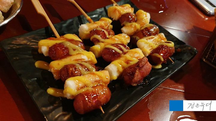 떡 튀김과 소세지의 조합