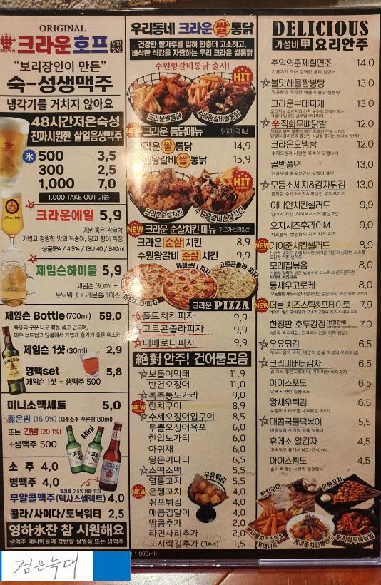 크라운호프의 메뉴판입니다