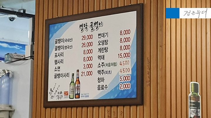 원조영락골뱅이의 메뉴판입니다